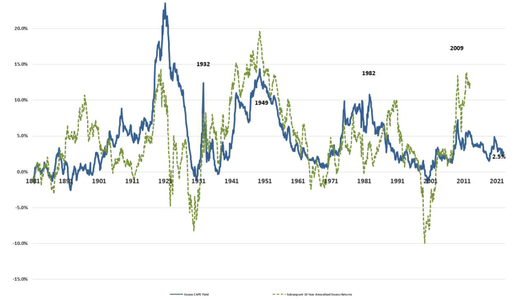 While CAPE has since fallen to 28, it is still high, sitting roughly 60% above the average.