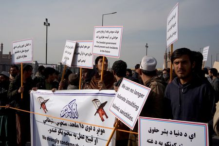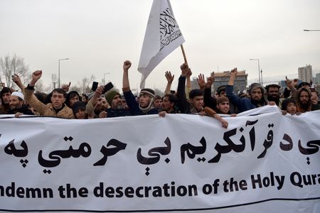 KABUL (Reuters) – Thousands of Afghans held protests on Friday to express anger after a far-right politician publicly set fire to the Koran in Sweden last week.