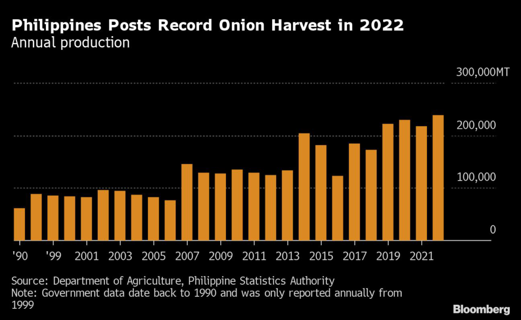 Government data indicate that the Philippines produced a bumper onion crop last year.
