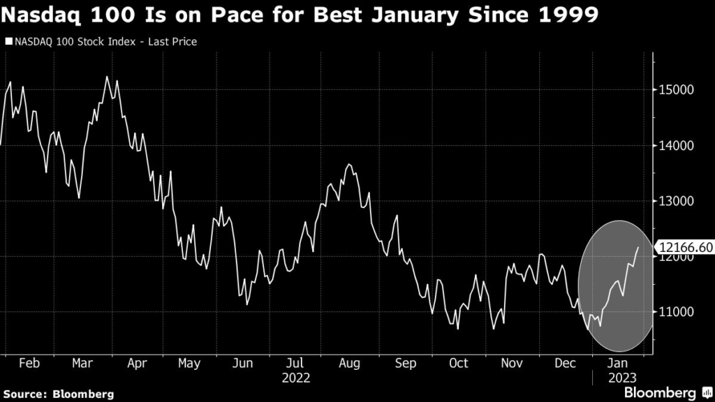 The Nasdaq 100 Stock Index is on pace for its best January since 1999 despite warning signs from the likes of Microsoft Corp.