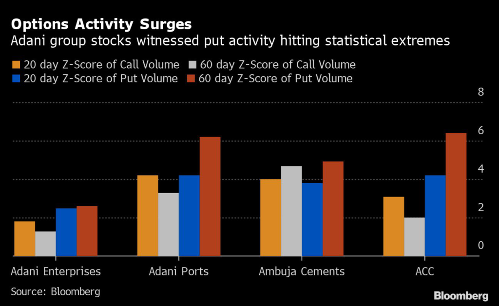 (Bloomberg) — Hindenburg Research’s attack on the Adani Group is sparking a flurry of bets in the options markets, with a wide divide between those behind the short seller and others predicting a rebound in the shares.