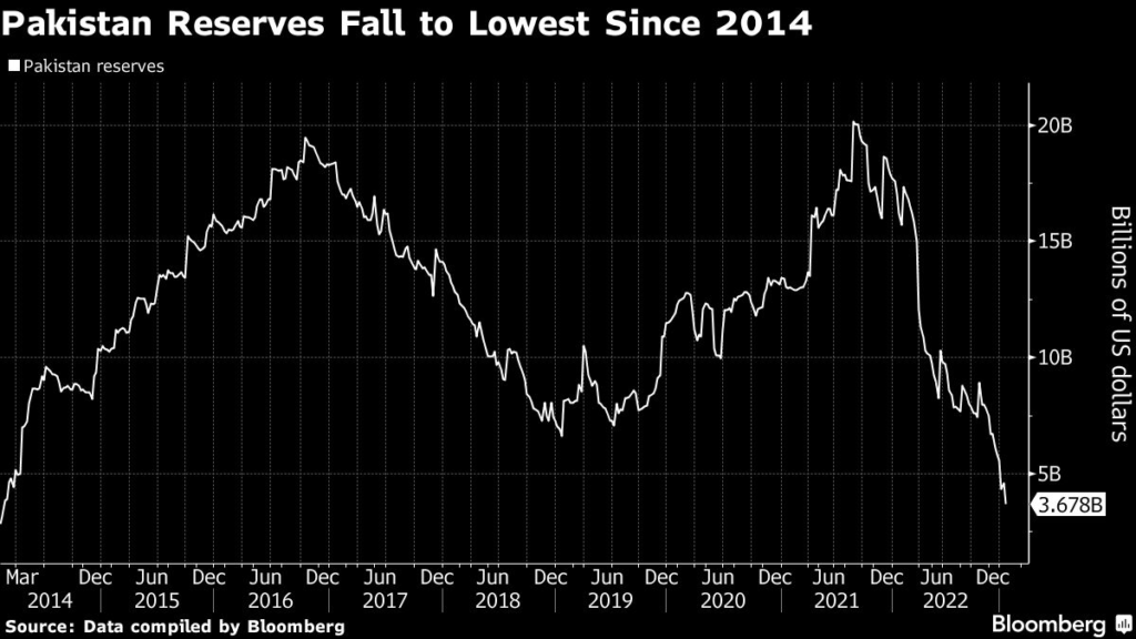Pakistan is spiraling deeper into crisis amid a shortage of dollars and accelerating inflation, with reserves falling to a nine-year low.