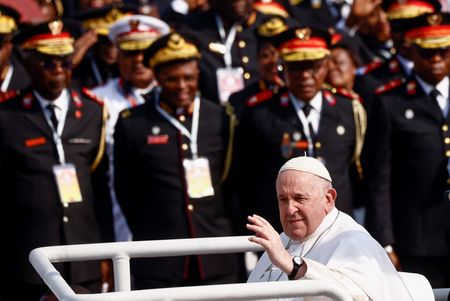 KINSHASA (Reuters) -Pope Francis heard harrowing accounts from victims of conflict in Democratic Republic of Congo on Wednesday, including rape, amputation, forced cannibalism and sexual slavery, and he condemned the atrocities as war crimes.
