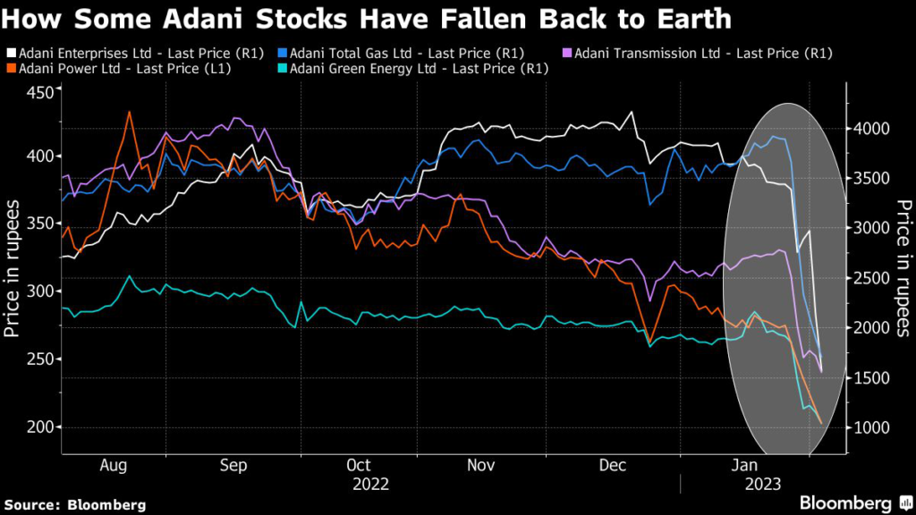 At one point on Friday, losses for some Adani stocks including the flagship reached more than 50% since Hindenburg published its explosive report.