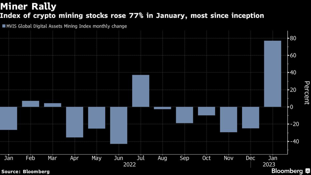 The largest cryptocurrency jumped nearly 39% last month, the most since October 2021.