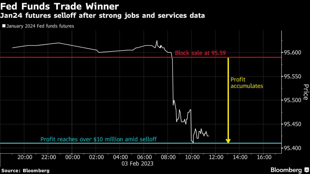 (Bloomberg) — Just minutes before the monthly jobs report was published on Friday, a trader placed a risky bet in federal funds futures that ended up paying off in a big way.