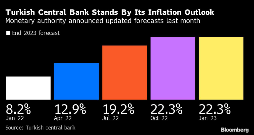 Policymakers then said they stood by their projections that forecast inflation will end the year at 22.3%, with Kavcioglu declining to elaborate on the likely path of interest rates.