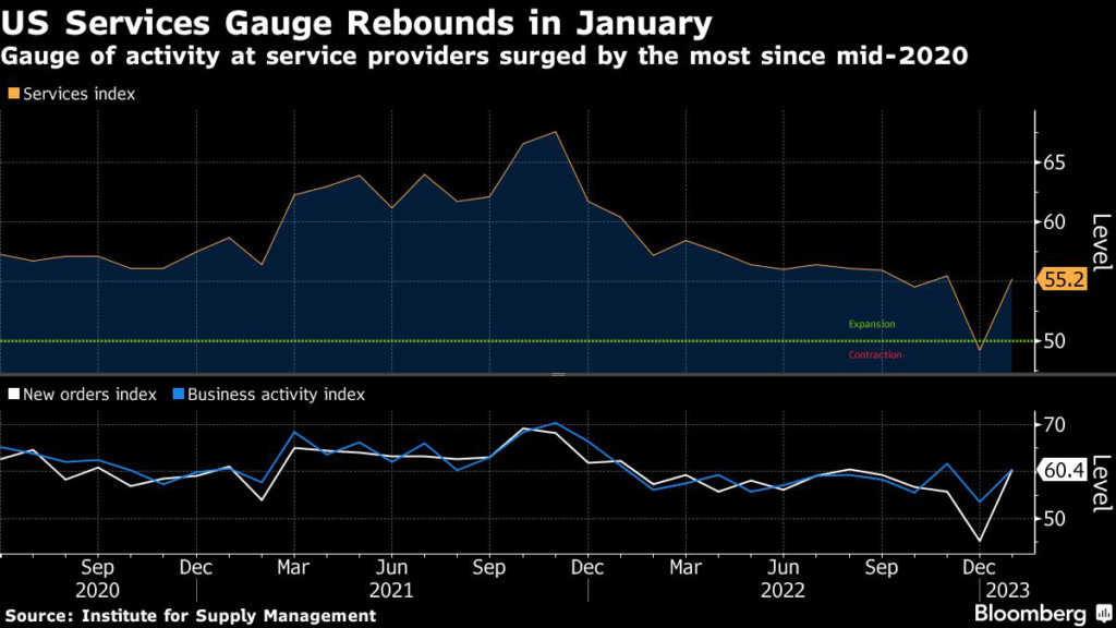 (Bloomberg) — A gauge of US services snapped back in January after an end-of-2022 slump, suggesting a resurgence in consumer demand that leans against concerns of an imminent economic slowdown.