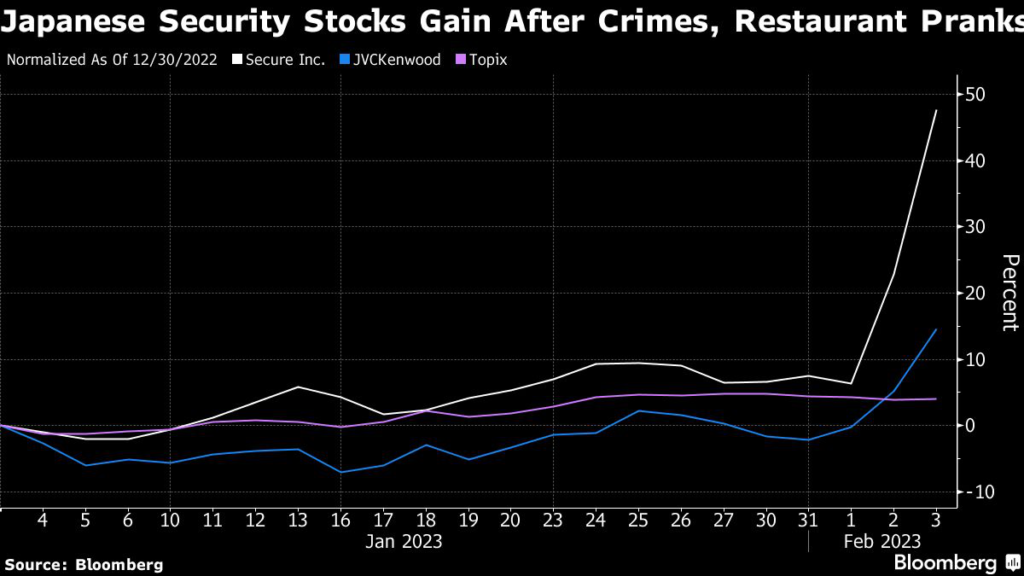 (Bloomberg) — A rare string of robberies and a wave of viral videos featuring restaurant patrons performing gross pranks have surprised stereotypically safe and straitlaced Japan, and the market has taken notice.
