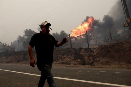 SANTIAGO (Reuters) -Dozens of raging wildfires in Chile claimed at least thirteen lives and torched some 14,000 hectares (35,000 acres), authorities reported on Friday, as a summer heatwave sweeps across the southern hemisphere country.
