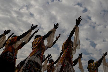 The crowd sang, drummed and ululated as Francis entered the dusty area.