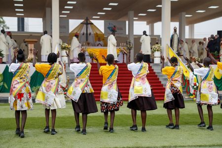 Francis presided at an open-air Mass on the grounds of a mausoleum for South Sudan’s liberation hero John Garang, who died in a helicopter crash in 2005 before the predominantly Christian country broke away from Muslim Sudan in 2011.