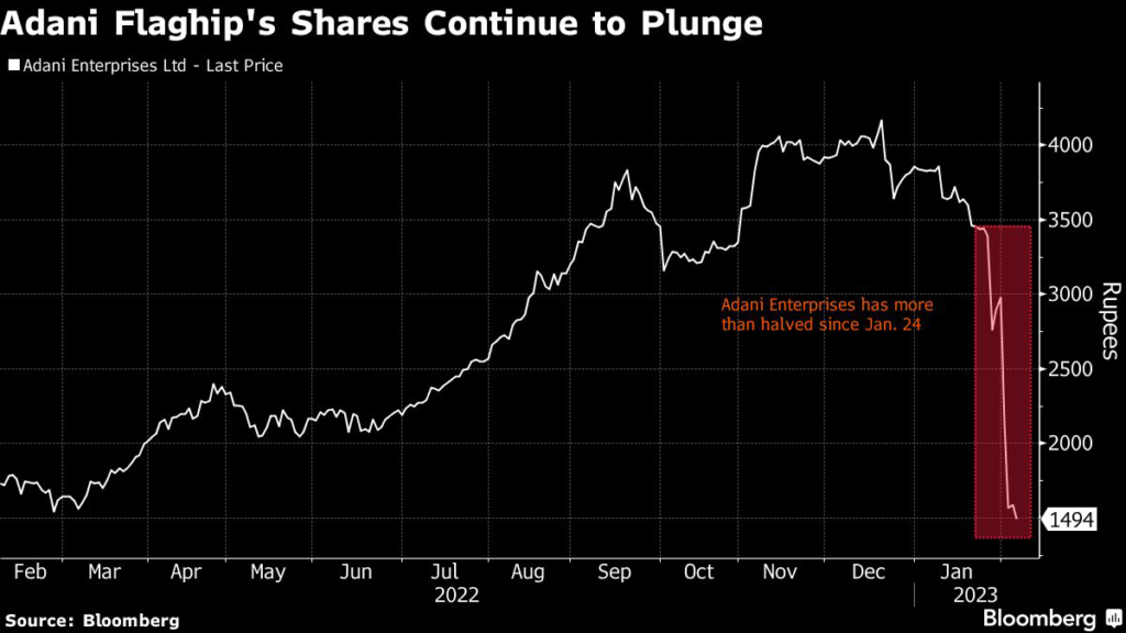 (Bloomberg) — Shares of Adani Group’s flagship firm are still expensive on some metrics despite plunging more than 50% in the rout triggered by US short seller Hindenburg Research’s scathing report last month, according to a New York University finance professor known for his expertise on valuation.