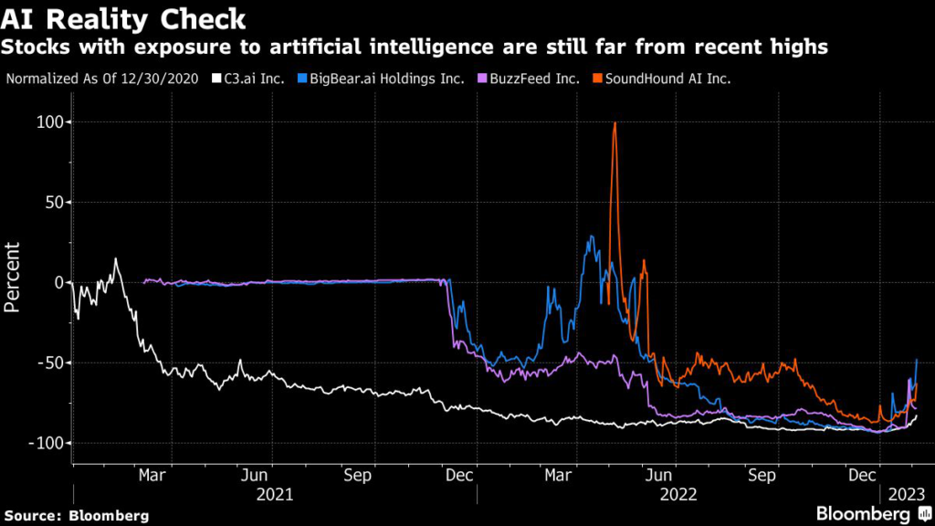 (Bloomberg) — The frenzy of triple-digit rallies for companies tied to artificial intelligence has been a boon for traders jumping on the bandwagon, but investors who bought in early are still waiting to recoup their money.