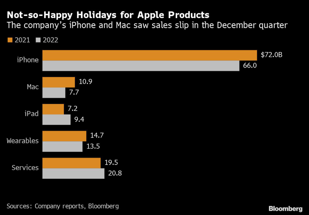 Apple last week reported its first quarterly revenue decline since 2019, blaming output disruptions at its biggest manufacturing partner in China as well as sputtering global demand.