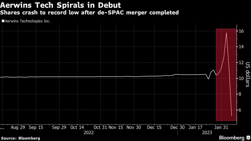 (Bloomberg) — The Nasdaq debut of a Japanese maker of $555,000 flying motorbikes was a dud after its tie-up with a blank check that valued the company at more than $600 million failed to shake off the gloom surrounding SPAC mergers.