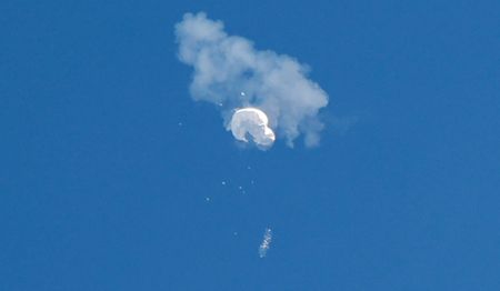 SURFSIDE BEACH, S.C. (Reuters) -A U.S. military fighter jet shot down a suspected Chinese spy balloon off the coast of South Carolina on Saturday, a week after it first entered U.S.