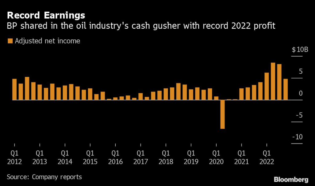 BP Plc hiked its dividend and extended share buybacks after posting a record profit of $27.65 billion for 2022, joining its fellow supermajors by reaping the rewards of soaring oil and natural gas prices.