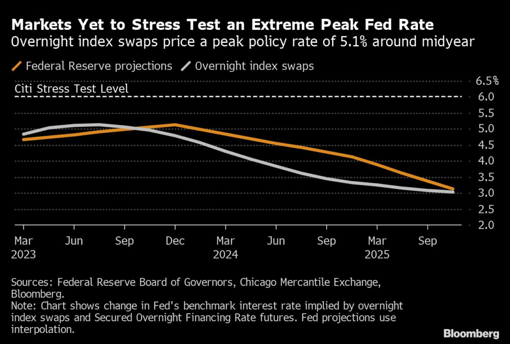 (Bloomberg) — Traders are ignoring the risk of a higher-than expected peak in US interest rates that may result in a painful selloff in both bonds and equities, according to Citigroup Inc.’s head of Asia Pacific trading strategies.