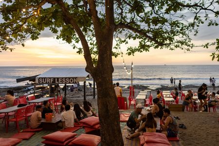 Tourists flock to the spectacle of the blue-grey hatchlings scurrying madly down the sloping beach to reach the water after they are released.