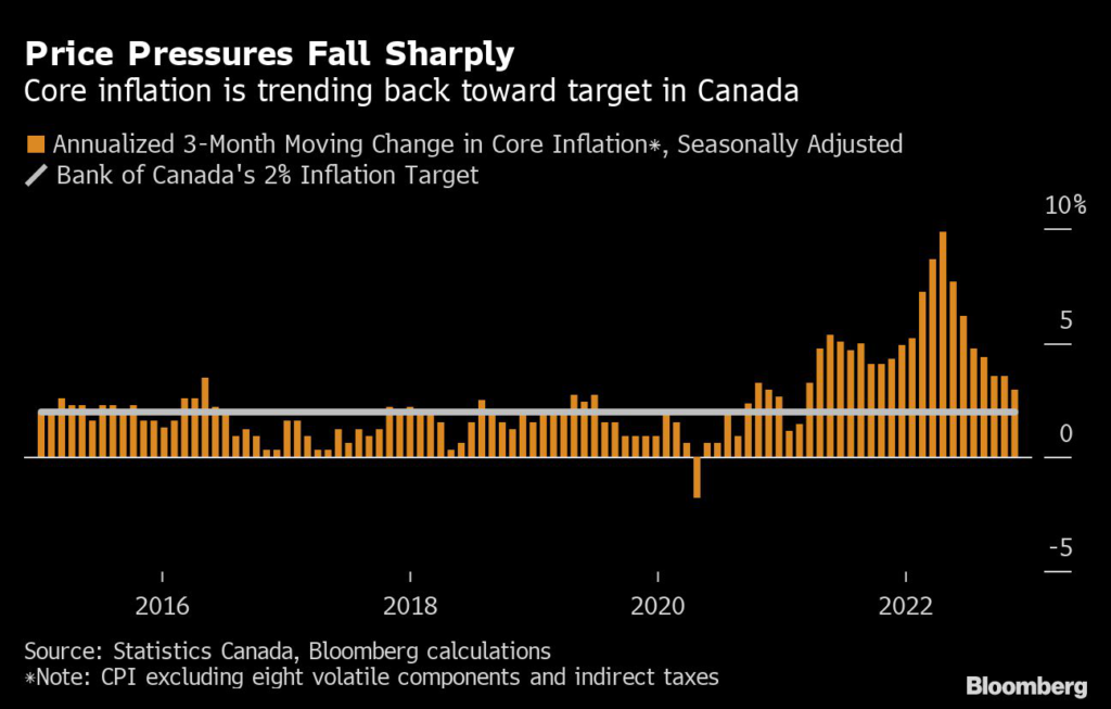 While annual price gains in Canada are running at 6.3%, “recent developments have reinforced our confidence that inflation is coming down,” Macklem said, reiterating a forecast for the headline rate to fall to 3% by midyear.