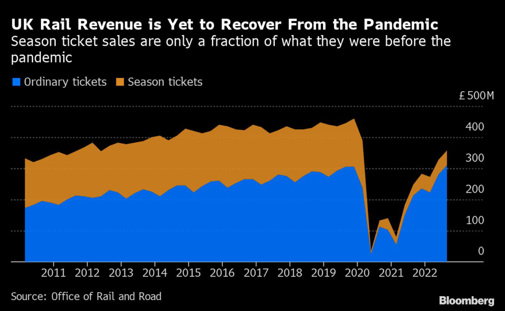 The rail network is still struggling with a drop in income as people make fewer trips into the office.