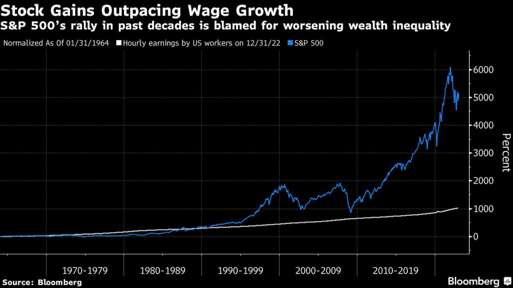 (Bloomberg) — One of many things to break in last year’s market rout was a decade-long stretch in which gains in stocks overwhelmed gains in wages.