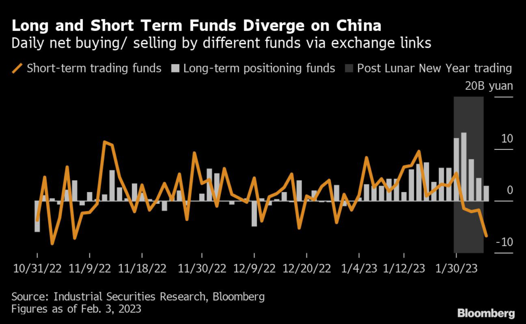 While some may read that as negative, a closer look by Industrial Securities Co. suggests less gloom. The data show that while short-term funds have been selling since the Lunar New Year holidays, long-term investors have been steadily boosting holdings — albeit at a slowing pace.