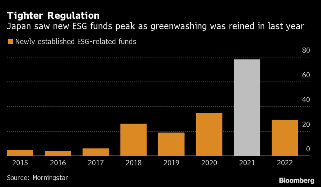 Japan’s financial regulator says it suspects “more than a few cases” of greenwashing by asset managers running ESG portfolios and will take “regulatory action against malicious cases,” Hideki Takada, director at the Financial Services Agency, said in an interview.