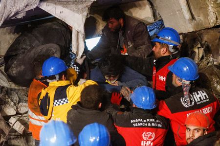 ANTAKYA, Turkey (Reuters) -The death toll of a devastating earthquake in southern Turkey and Syria jumped to more than 7,800 people on Tuesday as rescuers worked against time in harsh winter conditions to dig survivors out of the rubble of collapsed buildings.