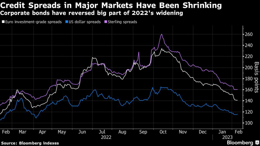 Credit prices have soared since October as traders bet that central banks will stop rate hikes at a lower level than previously expected.
