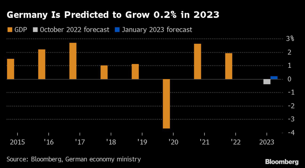 The results are broadly in line with the German government’s latest forecasts, which project the economy will avoid a contraction this year and expand by 0.2%.