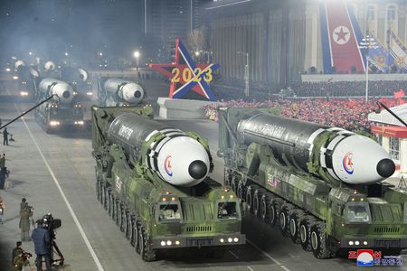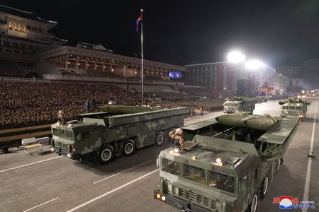 SEOUL (Reuters) -Nuclear-armed North Korea showcased its missile production muscle during a nighttime parade, state media reported on Thursday, displaying more intercontinental ballistic missiles (ICBMs) than ever before and hinting at a new solid-fuel weapon.