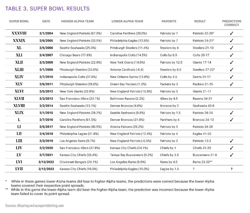 The team at Allspring say they’ve called 13 of the last 19 Super Bowls correctly.