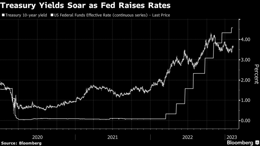 That means yields on 10-year Treasuries, a global benchmark for borrowing costs, could rise above 4% once more as the central bank continues to combat the hottest inflation in a generation.