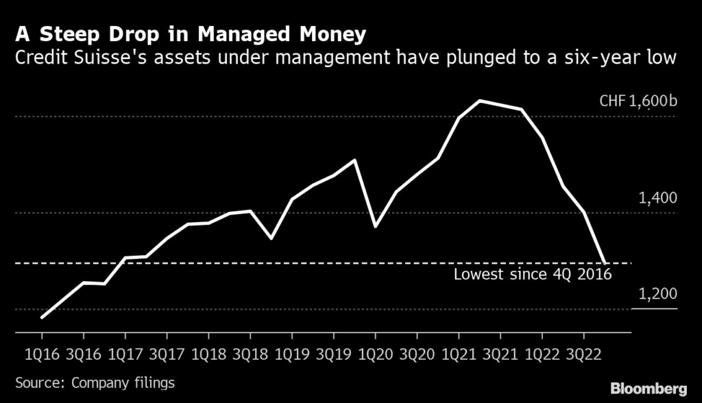 Sliding creditworthiness threatens to exacerbate the situation, with ratings firm Moody’s saying the outflows “pose additional challenges” to Credit Suisse’s turnaround strategy.