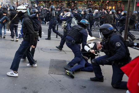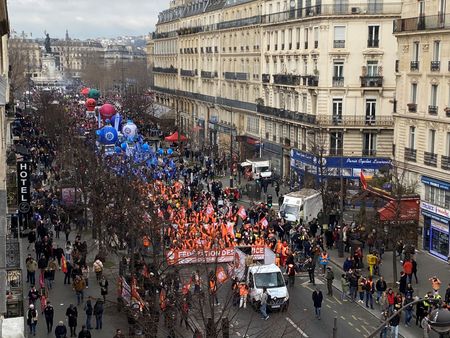 PARIS/TOURS (Reuters) – Hundreds of thousands of people demonstrated across France on Saturday seeking to keep up pressure on the government over its pension reform plans, including a move to raise the retirement age to 64 from 62.