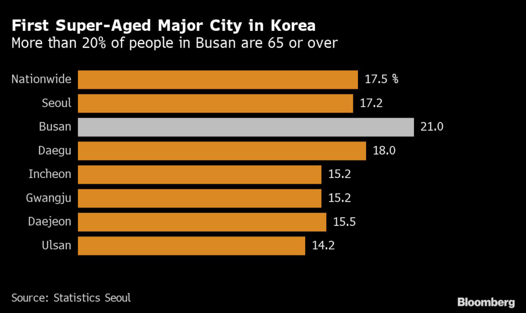 The problem is particularly acute in Busan, where people aged at least 65 rose to 21% of the population as of September.