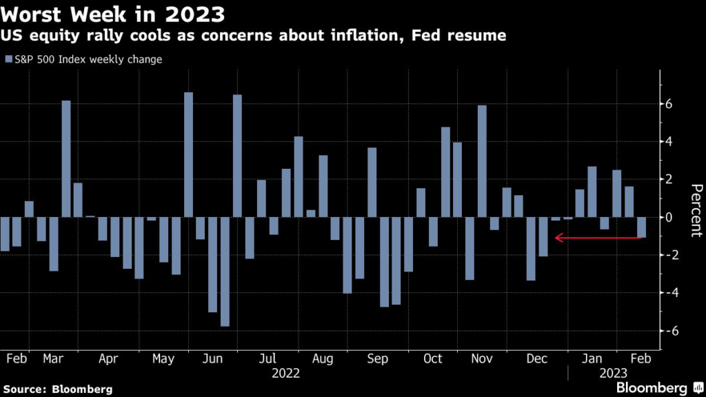 Meanwhile, US equities have seen one of the strongest starts to a year on record, though the rally has started to cool as Fed Chair Jerome Powell’s outlook for further rate increases weighed on sentiment.