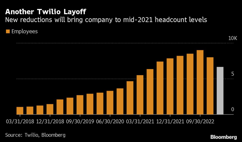 (Bloomberg) — Twilio Inc., a maker of customer communication and marketing software, said it will cut about 17% of workers just months after a previous major round of layoffs.