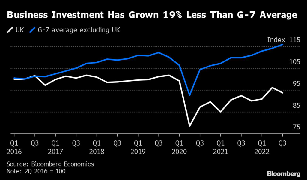 He’s also seeking to boost economic growth, with the UK economy still 0.8% smaller than it was at the end of 2019, the only Group of Seven country yet to fully recover output lost during the pandemic.