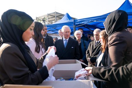 Charles shook hands with charity workers during a visit to West London Turkish Volunteers (WLTV), and chatted with them as they packed scarves, blankets, jumpers, and packets of biscuits as part of earthquake relief efforts.