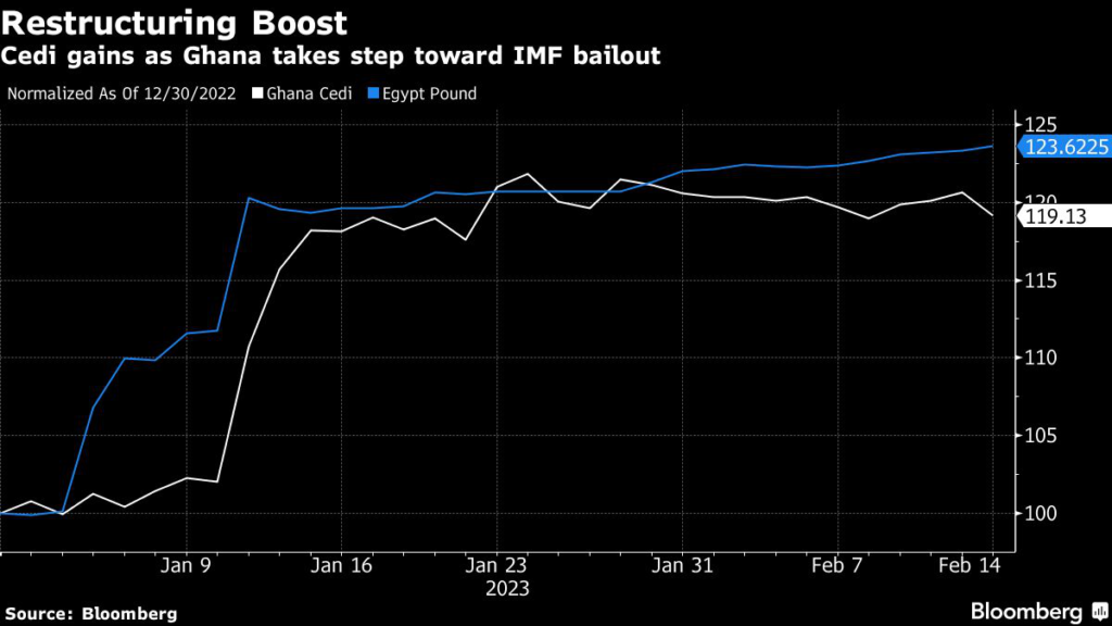 (Bloomberg) — Ghana’s currency surged as much as 3.1% against the dollar after the government said that it had received support from more than 80% of bondholders to restructure its local-currency debt.