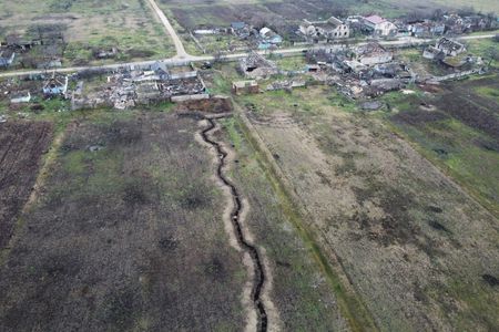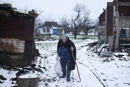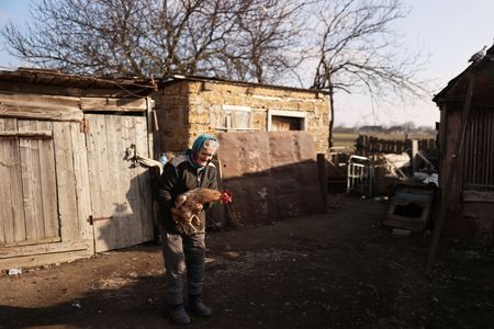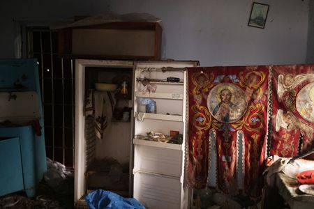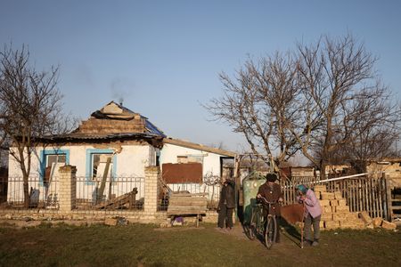 POSAD-POKROVSKE, Ukraine (Reuters) – The two houses in what had been no-man’s land between Russian and Ukrainian forces are badly damaged by shelling, there is no central power or heating and the surrounding fields are heavily mined, making them unworkable.