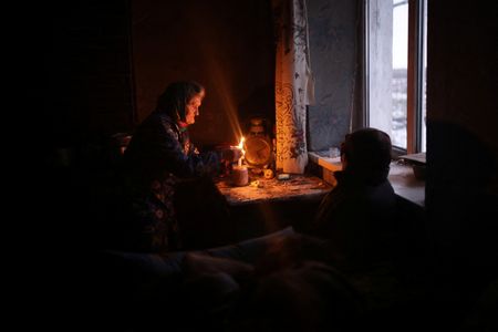 The cellar, which their late son Aleksandr built as a food store, has become their home, lit by candles when they are there.