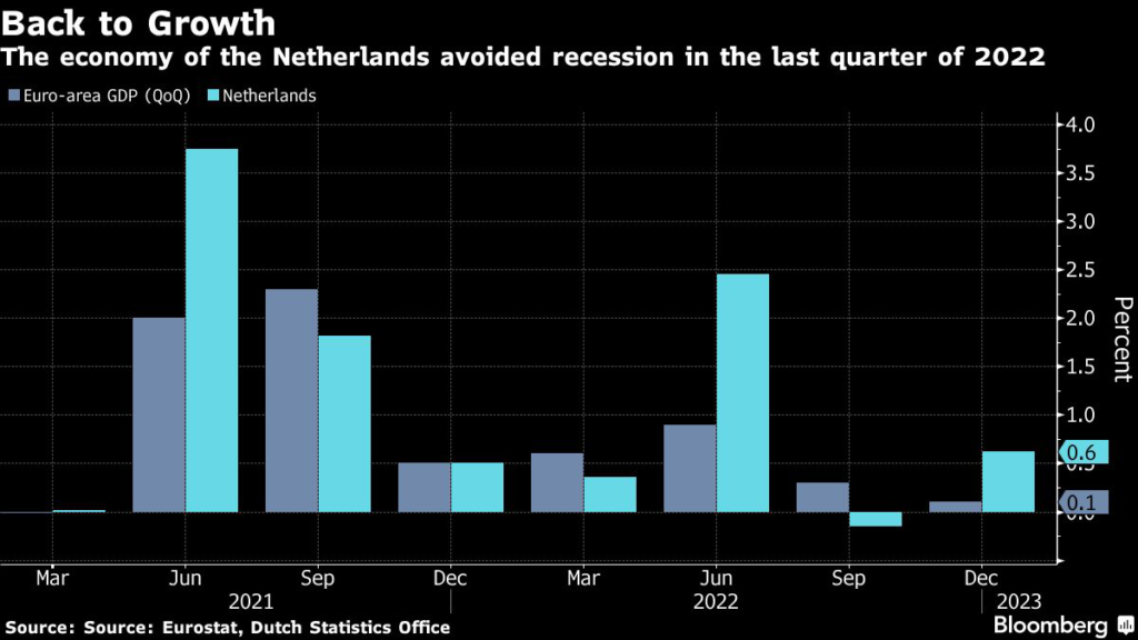 The Netherlands dodged a recession as household consumption and trade drove output in the final quarter of 2022.