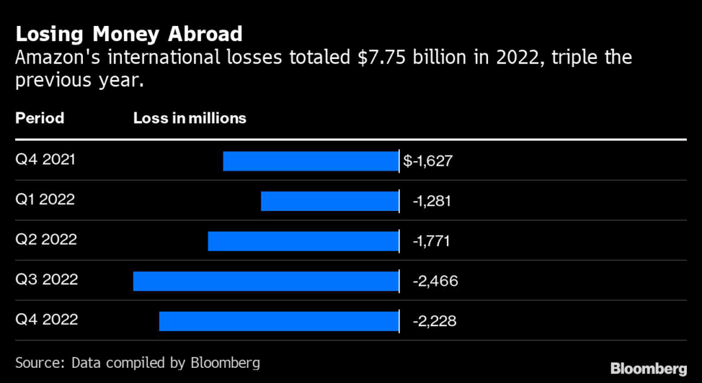 The company reported an operating loss of $7.75 billion for the international unit in 2022, triple that of the previous year.