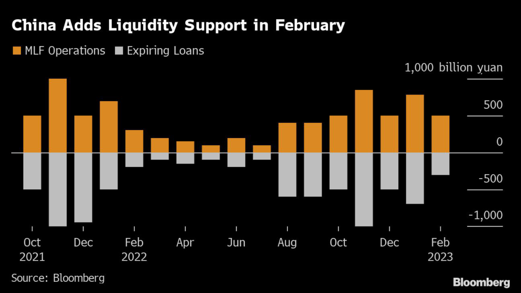 (Bloomberg) — China’s central bank added more cash into the financial system to meet a rapid, post-Covid Zero rebound in loan demand, while keeping its key policy rate steady for now as the economic recovery takes shape.