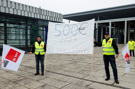 BERLIN (Reuters) -Strikes planned at seven German airports for Friday will lead to “massive disruptions”, the operator of the country’s largest airport, in Frankfurt, warned on Wednesday, setting the stage for another day of travel disruption caused by wage disputes.