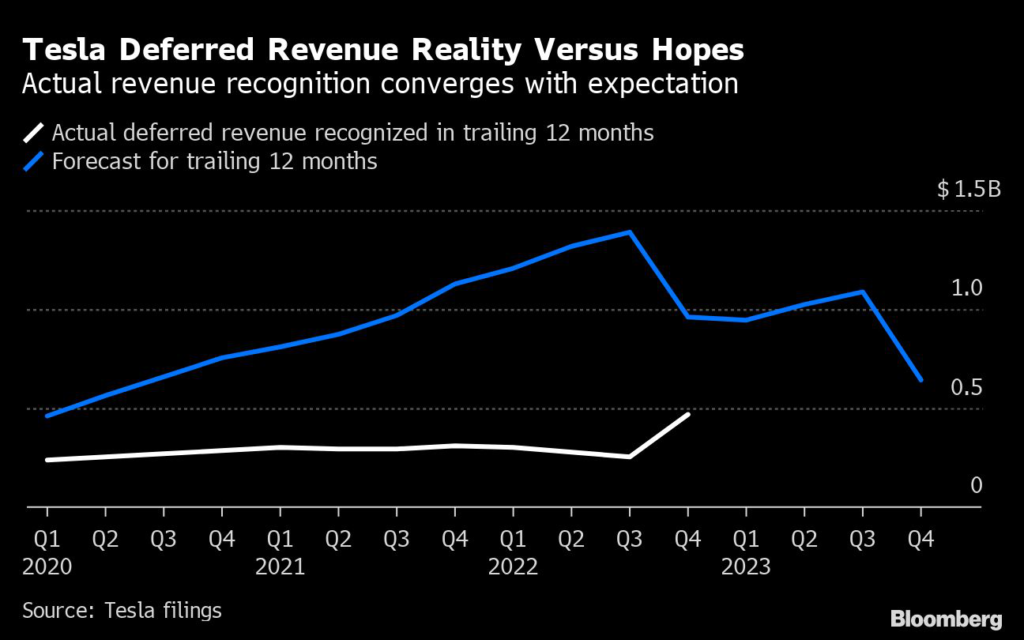 Days after Bernstein published that note, Tesla lowered its forecast for how much deferred revenue it expects to recognize in the next 12 months.